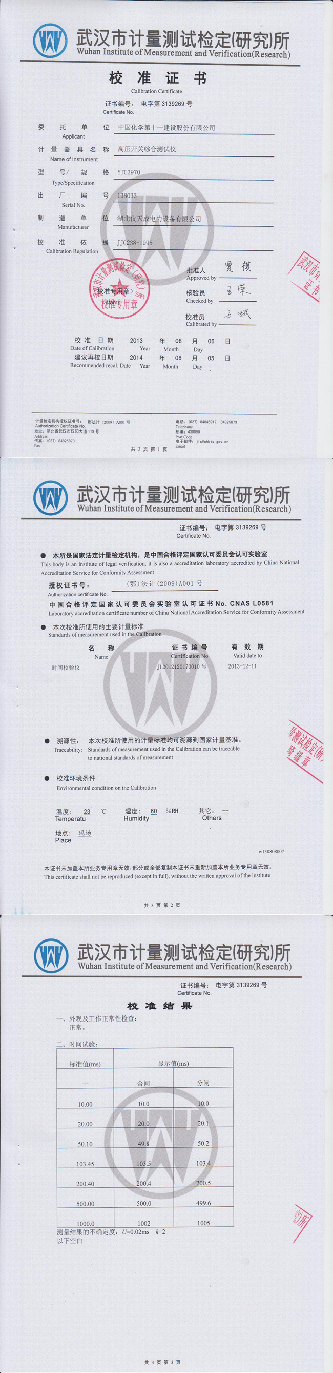 YTC3970高壓開關(guān)動特性測試儀鑒定證書